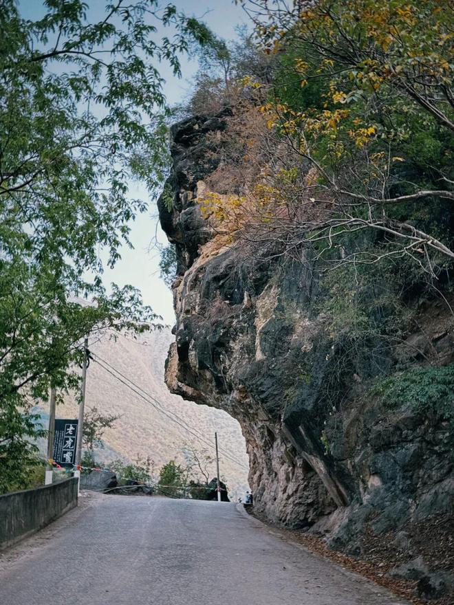 吃过饭,继续赶路。如今的惠通桥已经不通车了,得走下游四百米处的红旗桥。过了红旗桥,便到了怒江西岸的龙陵县。又行了一会儿,来到惠通桥西边桥头,继续沿着滇缅公路前行,很快,老虎嘴便在眼前。这老虎嘴,也是滇缅公路上的一道风景:右边是怒江,左边陡峭的悬崖挡住了路,只能将悬崖爆破开一个巨大的豁口。豁口状如虎口,开车过去,恰如羊入虎口。